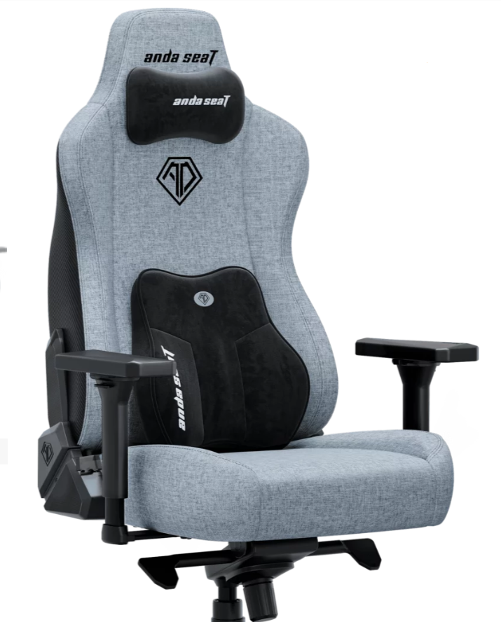 Кресло геймерское Anda Seat Kaiser 3E XL Grey Blue Fabric - изностостойкая мебельная льняная ткань EverSoft
