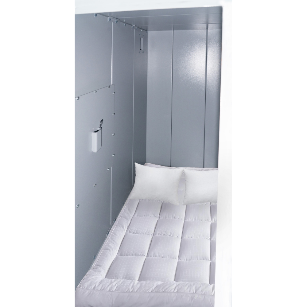 Капсула легко збирається та розбирається двома людьми всього за 2–3 години. Рівна підлога дозволяє зручно розмістити всередині матрац розміром 1,3 × 2,0 м, що робить укриття придатним для тривалого перебування в домашніх або офісних умовах.
